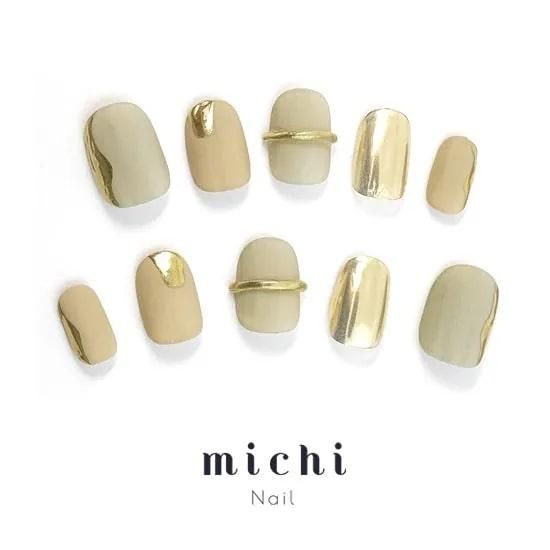 華やかゴールド×マットグレージュが可愛いミラーネイルチップ