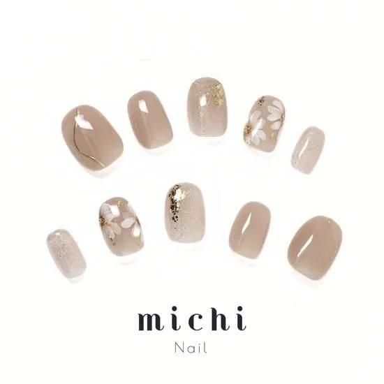 手描きのフラワーアートが指先のアクセントになり、キレイめな印象を高めてくれます。