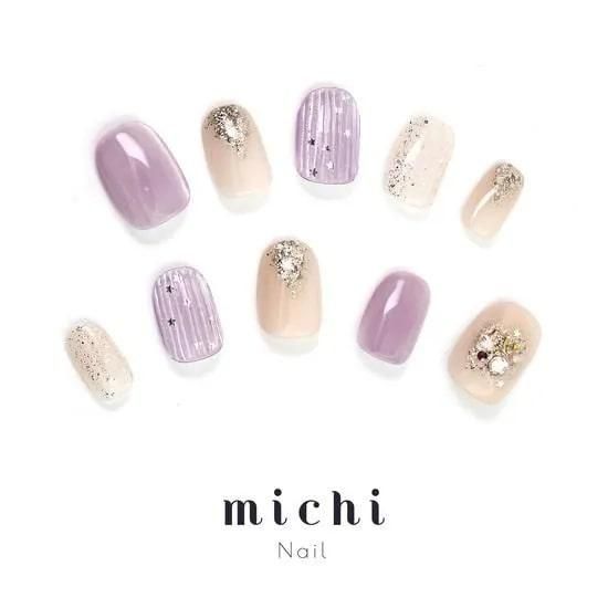 淡いパープルのマグネットネイルとアイボリーを組み合わせたネイルチップです。